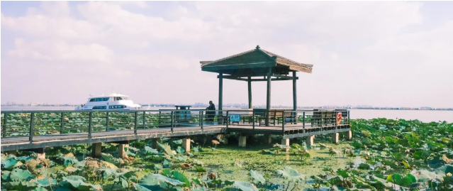 品嘗大閘蟹環(huán)節(jié)結(jié)束后,伙伴們?nèi)砸猹q未盡,便前往陽澄湖游客集散中心,一同坐船登上蓮花島。