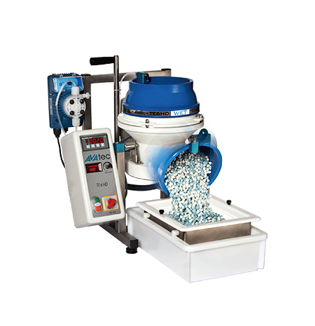 TE6HD用于外殼或耳模等表面處理,加工材料為碳化硅磨料。工作時(shí)磨料在磨盤中與工作一起旋轉(zhuǎn)以達(dá)到去除毛刺和修正表面的作用。