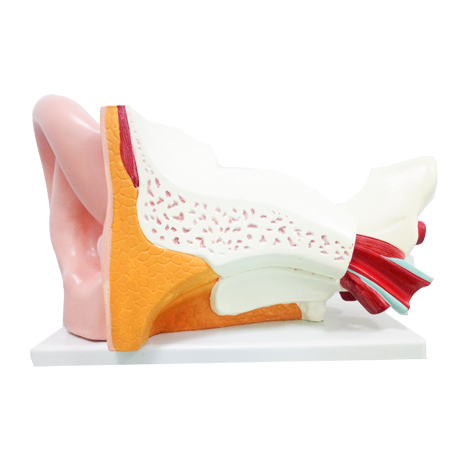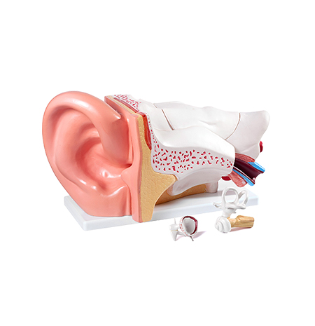 有外耳、中耳、內(nèi)耳組成的解剖模型。可以直觀看到聽骨鏈,半規(guī)管及耳蝸。適合于擺放在公司或助聽器專營店顯眼的位置,以營造專業(yè)的氣氛。通過模型的講解,增進(jìn)與客戶間的溝通和交流。