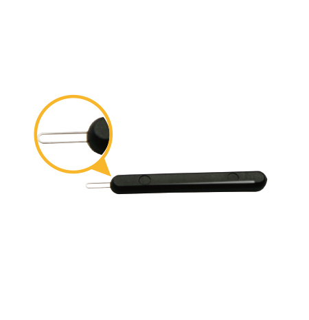 頂部的鋼針圓環(huán)可用于清除助聽器或耳模中的異物。