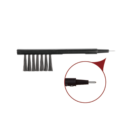用于助聽器及耳模的清潔。一端裝有磁鐵,可方便取出電池,另一端安有鋼針圓環(huán),可用于助聽器或耳模異物的清除。