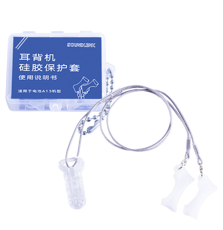 解決耳背機佩戴時易脫落等問題。硅膠套的設(shè)計有效防止皮膚汗水接觸助聽器。塑料單向夾,專利設(shè)計,表面無尖銳之處,特別適合兒童用戶。