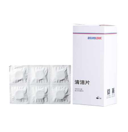 內(nèi)部鋁塑包裝,薄荷清香,快速除垢,清潔殺菌!效果立桿見影!配合耳模清潔罐內(nèi)使用。