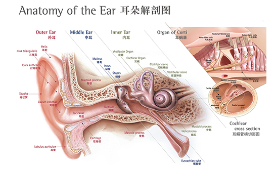 外耳結構及功能: 耳廓呈漏斗狀,能收集聲波并引導進入外耳道