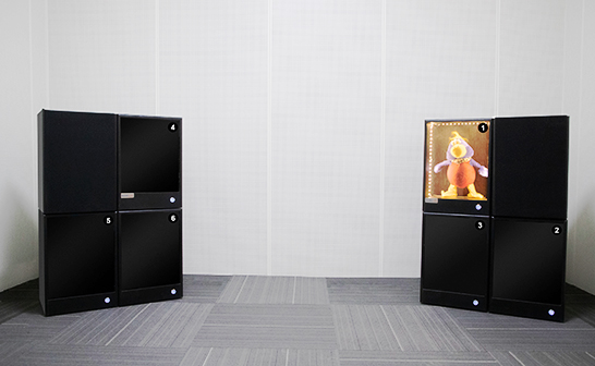 多通道視覺強(qiáng)化測聽系統(tǒng)為燈箱式設(shè)計,由揚(yáng)聲器單元、觀景箱、功放(選配)、視覺玩偶、遙控單元組成。